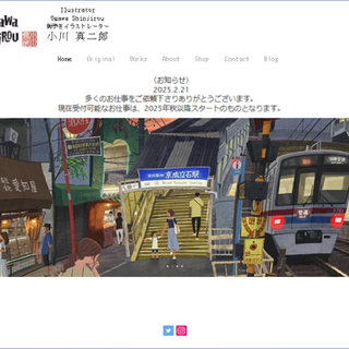 "街歩きイラストレーター" 小川真二郎 氏のサイト。鉄道沿線の街並みを雰囲気たっぷりなタッチのイラストで描かれています。最近あちこちでよく目にしますね。私の好きな、下町情緒あふれる京成沿線を描いた作品も幾つか。他に商業デザイン作品も多数手掛けられています。