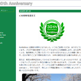 30周年記念 毎度ご来訪ありがとうございます。 おかげさまをもちまして、Rail&Bikes は本日 30周年を迎える事が出来ました。これを記念しまして、例により特集記事をまとめましたので以下にて公開します。 ≫ 30周年記念コンテンツ ≪ 今後ともよろしくお願いいたします。 コメントする (エラーになる場合がある為、コメント文は別ツールで作成の上こちらに貼り付ける事を推奨) 名前、ニックネーム URL(任意) ログイン情報を記憶 コメント